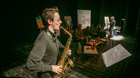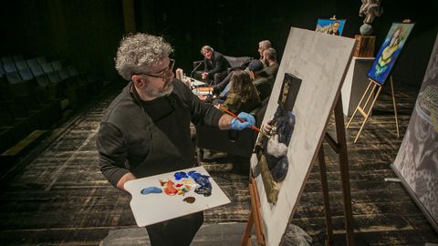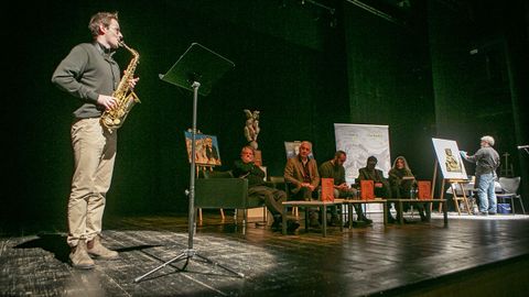 A música abriu e pechou o acto, a cargo do saxofonista da escola rianxeira Martín Castro. O alcalde, Julián Bustelo, deu a benvida, lembrou a actividade que se desenvolveu con motivo do ano Castelao, e presentou ao protagonista do eido artístico, o escultor Jontxu Argibay, quen, como tamén é costume, rematou a súa achega ao tempo que se desenvolvía a presentación. A obra pasa a formar parte dos fondos Castelao.