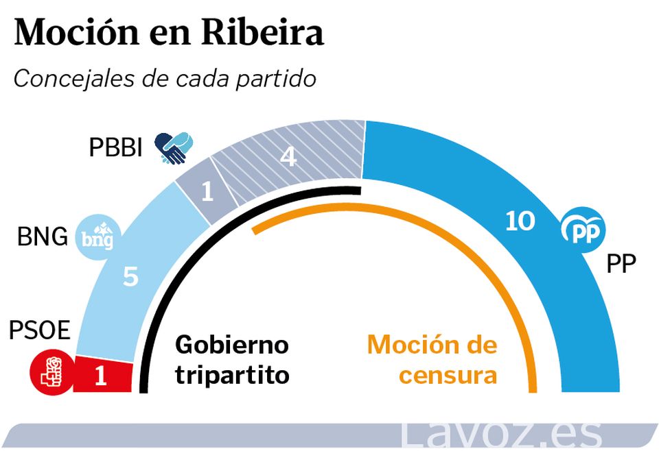 El alcalde de Ribeira, Luís Pérez Barral, se manifestó públicamente tres horas después de que PP y cuatro ediles de la formación independiente del PBBI presentaran una moción en su contra: «É unha operación bochornosa e que responde única e exclusivamente aos intereses partidistas e particulares de ambas as dúas formacións. Para nada responde aos intereses da veciñanza de Ribeira». Añadió que, como alcalde, «prodúceme vergoña allea ver como PP é capaz de calquera tipo de estrategia para tumbar a este alcalde e para acadar o goberno».