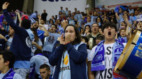 El Leyma ha superado uno a uno todos los retos que se ha ido marcando en una temporada que puede significar el reencuentro de la afición coruñesa con el baloncesto: la permanencia, puesto de play off, factor cancha, hasta, por primer vez en su historia, superar una eliminatoria. Y el último paso, convertir su eliminatoria frente al Breogán en una fiesta, hacer frente a un rival que le triplica en presupuesto y con unos cuantos cuerpos de ventaja en poso baloncestístico. Sin la afición de Lugo -ayer más de mil seguidores volvieron a acompañar a su equipo, al que, pese a la durísima derrota, aclamaron en el tramo final- nada hubiera sido igual. La marea celeste impulsó el despertar de su homónima naranja para que el Palacio de los Deportes de Riazor registrara su mejor aspecto desde la reforma.