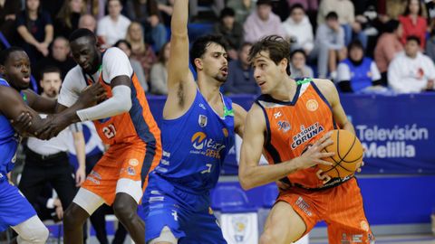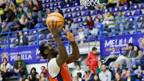 Diez minutos para resolver cuarenta. Once puntos frente a veintiocho. Guillem Jou y Mus Barro engrasaron la maquinaria en los primeros instantes, con una intensidad que evitó que el Melilla entrase en el partido. Desde el salto inicial y un primer parcial de 0-8 en menos de dos minutos, estaba todo meridianamente claro. Revolver las aguas fue la estrategia del Melilla ante al abrumador tsunami que se le venía encima, y de ahí que en los dos siguientes minutos el duelo entrase en un bucle de errores compartidos que congeló un marcador que prometía ser de escándalo.