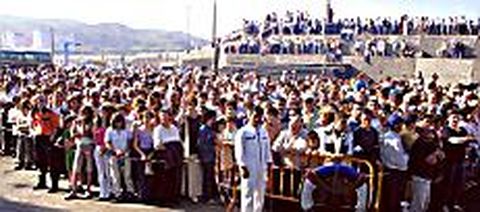 Los turistas americanos del «Song of flower» se sorprendieron por la multitudinaria acogida de miles de visitantes de la zona El calendario marcaba el 27 de mayo, pero si a uno lo pillasen desprevenido habría apostado diez a uno a que se trataba del 15 de agosto. Aunque sólo se tratase por el calor, el duro calor que jugaba con los 30 grados. Fue el domingo en Laxe, y fue como una fiesta. Miles de personas, turistas locales, comarcales y ocasionales, dispensaron una -otra- calurosa bienvenida a los 119 turistas americamos de verdad, esos que hasta el momento sólo se podían ver en el puerto de A Coruña o, los más veteranos saben, en la inolvidable y hortera «Vacaciones en el mar». Y ya se dice que ahora quieren más trasantlánticos.