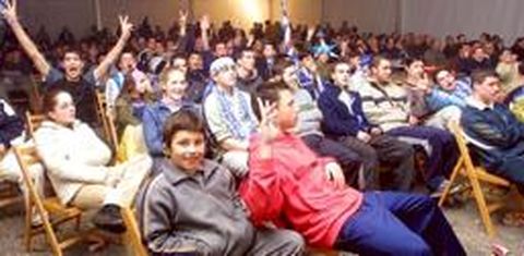 07 mar 2002 . Actualizado a las 06:00 h.El Recheo de Cee es el Catro Camiños de A Coruña. Y, si no lo es, para el caso. Allí, la Delegación de Cultura del Concello instaló una gran carpa, con una pantalla gigante, en la que se dieron cita 400 aficionados. No todos eran deportivistas, pero los blancos se marcharon antes de que los otros colgasen la enseña blanquiazul en la fuente, y aún estaba ayer. En Carballo, un grupo de animados vecinos acudieron hasta la fuente de la plaza de la Cruz Roja con sus banderas, pero el agua no llegó a la calle. Los petardos, las bombas de palenque, los bocinazos y los gritos-hasta-la-afonía dominaron la noche, que los termómetros marcaban fresca. No lo fue para los hinchas que, seguramente recién llegados de la celebración en A Coruña (muchos aficionados se fueron hasta la ciudad herculina a trabajar el gozo) pararon unos momentos el tráfico en la Vázquez de Parga, cogieron un balón y se pusieron a emular a Tristán, poco después de las doce de la noche. Delantero cuyo nombre, por cierto, ya se comentaba ayer por la comarca que es el sonido que emiten las campanadas del reloj de la Puerta del Sol (tris-tán). La mayoría de aficionados que se desplazaron a Madrid llegaron ayer, pero falta alguno.