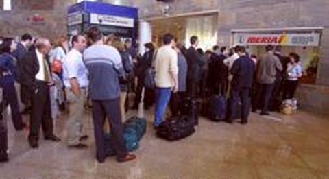 05 oct 2002 . Actualizado a las 07:00 h.Alvedro anda manga por hombro. Y esta vez el tamaño de la pista no importa. Tampoco el 11-S. El vuelo que tenía que llegar de Madrid ayer a las ocho y media de la mañana no lo hizo hasta las once. Y el que tenía que partir hacia Madrid a las dos de la tarde tampoco lo hizo. Ni a las dos, ni a las tres, ni hacia atrás. Se canceló. ¿Por qué? «Por causas técnicas», dijeron por los altavoces. Aena culpa a la huelga de celo que mantienen los controladores, pero éstos dicen que no, que la culpa la tiene la empresa pública, «por su mala gestión». Mientras unos y otros se lanzan los trastos, los pasajeros se amotinan. Las 130 personas que ayer se quedaron en tierra, sin poder viajar a Madrid a las dos de la tarde, estaban que se subían por las paredes. Los más perjudicados eran los que necesitaban llegar a Barajas para enlazar con otros vuelos, nacionales o internacionales. Se les notaba a chorros porque eran los que más gritaban. Se oyeron insultos contra todo y todos. Como los que se lanzan al televisor en un partido de fútbol. Hierro nunca los oirá. Los controladores, tampoco. Ventanilla de Iberia Y si a los pasajeros se les hizo una faena, al encargado de la ventanilla de Iberia del aeropuerto no le fue mucho mejor. No tenía previsto volar, pero de saber lo que le iba a caer encima, hubiese volado bien lejos. Tuvo que calmar los ánimos de los 130 perjudicados. A unos intentaba subirlos a un bus para que viajasen por carretera a Madrid. A otros les ofrecía la posibilidad de intentarlo desde los otros aeropuertos gallegos y a los menos les devolvía el dinero del pasaje. Es lo que le ocurrió a un pasajero. Tenía billete para Madrid a las dos de la tarde. Y a las cinco tenía otro que lo llevaría desde Barajas a Lanzarote. No podía ir en bus porque no le daba tiempo. Tampoco tenía margen de maniobra desde Peinador, pues tenía que esperar a las nueve de la noche para embarcar. Así las cosas, se quedó en casa, sin poder pasar el fin de semana en Lanzarote. Otro que no estaba para bromas era un pasajero que compró el billete a las doce. Una hora después le dijeron que el avión no iba a despegar. «Seguro que me lo pudieron haber dicho antes de comprarlo, pero como esto funciona así y aquí nadie dimite ni lo cesan, pues vale todo», decía. Roma Un grupo de coruñeses que pretendían viajar a Roma para presenciar la ceremonia de canonización del beato Josemaría Escrivá de Balaguer tendrán que esperar hasta hoy. Cada pasajero tenía una triste experiencia que contar. El que tenía que firmar un contrato en Madrid a las seis de la tarde se compadecía del que perdía el enlace con La Habana. El que estaba que trinaba porque el bus le marea no estaba tan molesto como el hombre de negocios que intentaba aplazar sus reuniones desde su teléfono móvil. Otros optaron por viajar en taxi. Antes de meter el equipaje en el maletero, se preguntaban: «¿Qué es lo que tiene que pasar para que lo de los aviones se solucione?». Ya por la tarde se normalizó el tráfico. Todo volvió a su sitio. Alvedro, así, no despega.