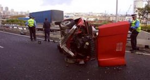 A las 10.45 horas de ayer se produjo un espectacular accidente en el viaducto de la avenida del Ejército. Una mujer, al volante de un Seat 127, se estrelló contra la separación que divide los carriles de desvío hacia el viaducto, a la altura de la gasolinera. El coche salió despedido y dio una vuelta de campana hasta quedar volcado sobre la calzada. La conductora salió por su propio pie del turismo y contó, muy nerviosa, que se había distraido intentando apartar un insecto. Tras su vehículo, que quedó totalmente destrozado, venía otro en el que iban dos jóvenes y sobre el que cayeron restos de la mediana -la separación tiene un relleno de arena para amortiguar los golpes-, lo que provocó que derrapara y chocara levemente con otro turismo estacionado en la bajada de la avenida del Ejército, antes del cruce con la ronda de Outeiro.