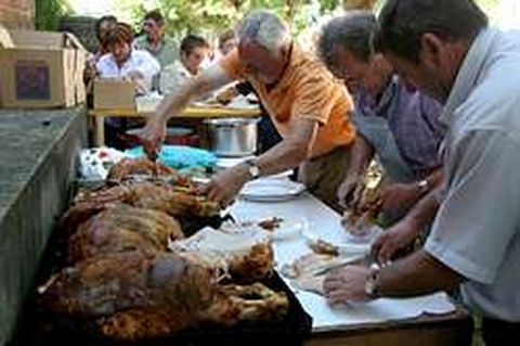 19 sep 2005 . Actualizado a las 07:00 h.Los vecinos de Bértoa sí que saben celebrar las fiestas en comunidad. Aprovechando la festividad de Santa Eufemia, organizaron una comida que se sirvió en el atrio de la iglesia en día de la patrona. Los cerca de 300 comensales dieron cuenta de los 11 jamones que con esmero asó Alfonso Álvarez Verdes en el horno de su panadería, situada a escasos metros del campo de la fiesta. El artesano también elaboró más de setenta kilos de pan y un buen número de roscas de pan de huevo que ayudaron a completar el menú. No hizo falta carpa alguna para disfrutar de la cita, pero si se agradecía una gorra para protegerse del sol. Eso no impidió que los comensales estuviesen cómodos, tanto que sólo la llegada de la noche rompió la sobremesa. Estas sí que son buenas iniciativas. Quizá estamos demasiado mentalizados de que nuestras fiestas populares tienen que ser las que más dinero se gastan en pólvora o la que trae a las orquestas más caras del momento. Sin embargo, este es un ejemplo de que en la mayor parte de las celebraciones de la zona lo que el vecino quiere es salir a la calle, saludar a los parroquianos y compartir una jornada entrañable. Otra celebración que hay que alabar es la Festa da Pataca. A mi amiga Agnieszka Kadziolka le ha fascinado. Es polaca y se encuentra en Galicia realizando un estudio sobre nuestras fiestas y cómo influyen en nuestra forma de ser. Me contó que se lo había pasado muy bien y que tuvo la oportunidad de realizar muchas entrevistas entre el público. Entre tanto John Deere, Massey Ferguson, Kubota o Same -léase, tractor- maquillado con figuras de hórreos y hasta del asturiano Fernando Alonso en versión patatera, la joven Agnieszka descubrió una fiesta gastronómica con una marcada personalidad y que el público identifica fácilmente. Por su parte, Lito de Arzúa se metió a los festeiros en el bolsillo con los gags pataqueiros de su pregón. Quien se reía a mandíbula suelta era el alcalde, Antonio Pensado Plágaro, que estuvo acompañado por José Manuel Romay Beccaría y José Antonio Santiso Miramontes.