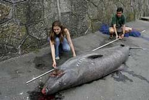 21 jun 2006 . Actualizado a las 07:00 h.En realidad, es un ejemplar de cañabota ( hexanchus griseus ), una de las varias clases de tiburones existentes. Llegó ayer a Corme a bordo de un arrastrero de Ribeira que anda a la pareja, el Coral , que lo había capturado al arrastre. Lo descargó en el puerto y causó la lógica sensación entre la vecindad. Hasta el lugar se desplazaron los técnicos de la Coordinadora para o Estudo dos Mamíferos Mariños (Cemma), a los que el Coral ya había proporcionado otros ejemplares en anteriores ocasiones. Uno de sus biólogos declaró que es muy raro observar estos animales, ya que su habitual común está en aguas profundas, al menos de cien metros (y hasta mucho más de mil). Pueden llegar a medir cinco metros de largo, aunque el de ayer rondaba los tres, y era adulto. Aun así, impresionaba su aspecto. El técnico de la Cemma explicaba que nunca había visto uno tan grande. Al principio pensaban que se trataba de un tiburón peregrino, pero cuando lo vieron constataron que se trataba de una cañabota. Esta especie suelen habitar aguas tropicales y templadas, y navega por las vertientes de las plataformas continentales e insulares. Tiene seis aperturas branquiales a cada lado de la cabeza y una sola aleta dorsal. El peso de los mayores ejemplares se acerca a los 800 kilos. Suele alimentarse de peces, moluscos, crustáceos, y hasta focas. Los restos se dividieron en dos. Por una parte, la cabeza fue trasladada al museo de historia natural de Ferrol, donde probablemente se utilizará su cráneo y su mandíbula. El resto del cuerpo se quedó en Corme, y un portavoz de Protección Civil explicó que el Concello tendría que hacerse cargo de los restos.