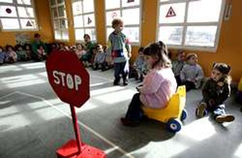 En directo | Los niños de la guardería de Sigüeiro aprenden educación vial Distinguir lo que significan los colores verde y rojo y conocer una señal de stop antes de aprender a leer y escribir es el objetivo marcado por el plan de seguridad promovido por el Concello