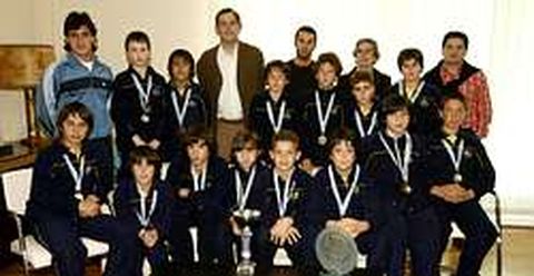 Gentes del Finisterre Los alevines del equipo de baloncesto del centro carballés fueron recibidos ayer por el alcalde para homenajearles por el campeonato provincial, un gran éxito