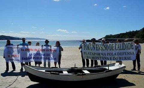 La Federación de ANPA da Costa da Morte convocó una peregrinación a Fisterra para protestar contra la Lomce y los recortes educativos. Los participantes cubrieron el sábado el último tramo del camino. Partieron de Corcubión y realizaron una parada en Sardiñeiro, donde exhibieron pancartas, colocaron carteles en defensa de la enseñanza pública y leyeron un manifiesto. Además de padres, alumnos y docentes de la zona hubo integrantes de la federación de Lugo y de Nova Escola Galega.