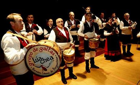 El festival As nosas músicas consiguió prácticamente el lleno en el auditorio municipal de Cabana El grupo Lúa chea, en la foto, fue uno de los seis que participaron en el recital que tuvo lugar ayer. También estuvieron las corales de Cesullas, Corcoesto y Canduas, además de los gaiteiros de Anos y Fol de Neaño. foto ana garcía