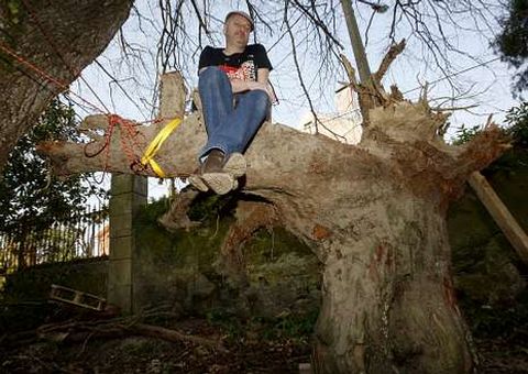 «Lo vi tirado en la portada de La Voz [la del 15 de febrero] y pensé que era una barbaridad que esto se perdiera», recuerda el artista, que pretende transformarlo en una monumental escultural. «Se la daré al Ayuntamiento, mande quien mande, y me encantaría que la pusieran en el mismo lugar en el que estaba el árbol».