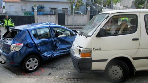 Tres personas resultaron heridas sobre las 14.30 horas debido a un accidente en el que se vieron implicados tres vehículos. Ocurría en la AC-429, a la altura del cruce con Serantes (Laxe). Un Renault Mégane Scénic chocaba contra un Dacia Sendero. Ambos golpeaban posteriormente a un Toyota Hiace que estaba aparcado. Un xalleiro, Manuel Castro Blanco, de 66 años y que se encontraba fumando fue alcanzado por los vehículos y resultó herido. Acudieron el GES de Ponteceso y Tráfico.