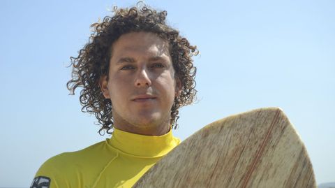 Alberto Fernández, de Sevilla, ejerce de instructor de surf en la escuela Raz Surf Camp de Razo