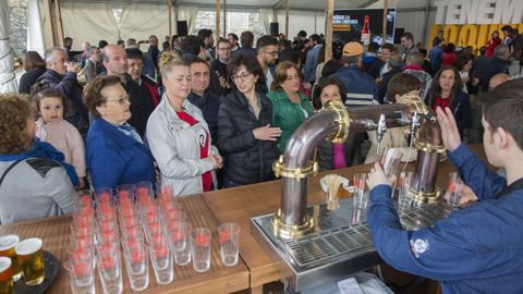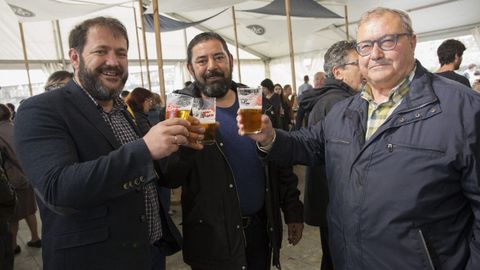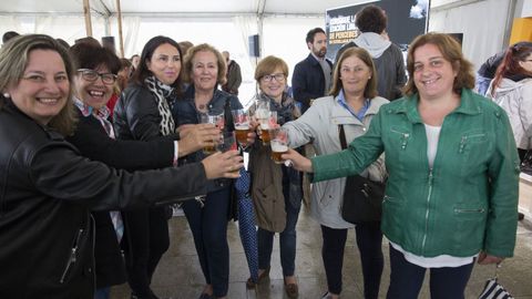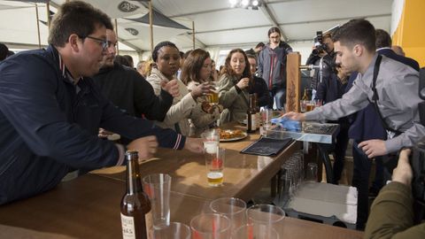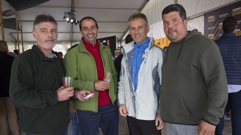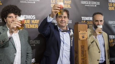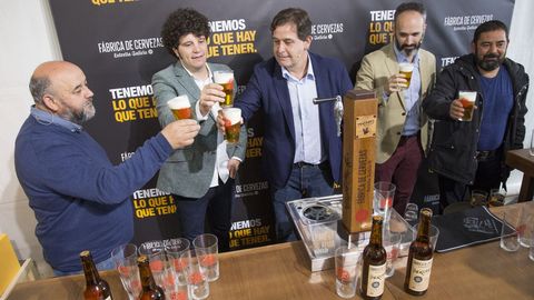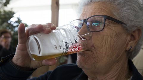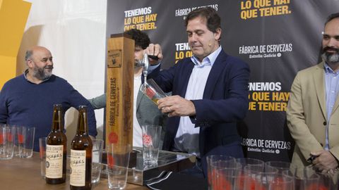El percebe se incorporó en el proceso de ebullición del mosto y, la alga, «ramallo de mar», en el proceso de maduración. Por vez primera han usado también lúpulo de variedad Magnum que, sumado a Nugget y Perle, ofrecen buenos niveles de amargor. «Fábrica de Cervezas Estrella Galicia edición Percebes Costa da Morte» podrá encontrarse en una selección de cervecerías de bodega y establecimientos de alimentación. Por vez primera, se comercializó también online: las existencias puestas a la venta por esta vía quedaron agotadas en horas. Sabor a mar es lo que Alvar aprecia en el nuevo resultado del sello Fábrica de Cervezas. Esta fue «la que más tiempo nos ha llevado sacar». Antonio Muíños, responsable de Portomuíños, detalló características del alga empleada para la cerveza, codium spp, «con moita identidade». Hasta 30 especies sopesaron para ver cuál podía encajar mejor. «A horta mariña que temos debaixo da auga é espectacular. O esforzo da proba mereceu a pena». La cerveza presentada ayer por Estrella Galicia no hubiese sido posible tampoco sin la colaboración de la cofradía de Corme. En representación de esta intervino José Manuel Suárez, presidente de los mariscadores. «Que hai que ter para coller percebes?», le preguntó Touriñán. «O que non hai que ter é medo», respondió él. Cuidado con el mar, «porque o percebe non se move»: es una lucha contra él. Cuando recibieron la llamada de Estrella Galicia para hablarles de este proyecto, «pensamos que era unha broma, unha chafallada que viña por aí abaixo, unha cousa de dous días». Sin embargo, no lo ha sido, y Corme fue la localidad elegida para presentar el resultado. Allí fue recibida la cerveza con orgullo y aplausos, como los brindados al percebeiro José Francisco Carabel Mosqueira, Cartón, cuando aparece en el spot publicitario. Alcalde de Ponteceso, Lois García, ediles y otros representantes de entidades quisieron estar presentes.