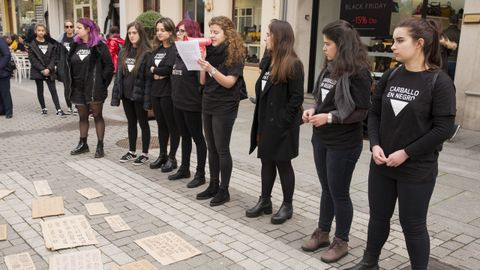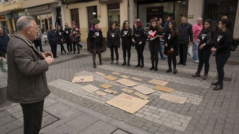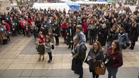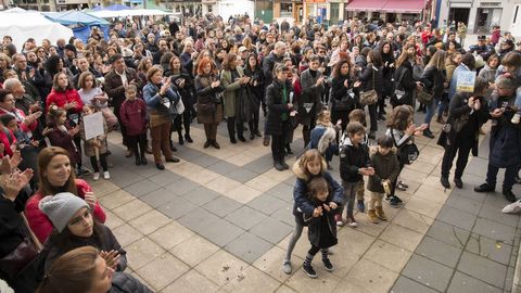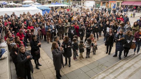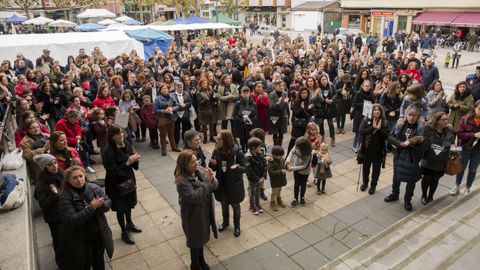 Distintos miembros de la corporación, con el respaldo total de sus 21 integrantes, leyeron ante varios centenares de personas y en un domingo de mercado concurrido, la declaración institucional unánime: «A violencia contra mulleres e nenas non diferenza culturas, idades, crenzas relixiosas ou clases sociais. Está presente en todas as sociedades do mundo. Segundo Nacións Unidas, cada 18 segundos unha muller é maltratada no mundo (...). Teñen dereito a vivir sen violencia». Se demandó en los manifiestos una actuación unitaria, un consenso institucional, político y social; educación y sensibilización; medios judiciales y policiales; cambios en una sociedad que vio el pasado 8 de marzo un punto de inflexión.