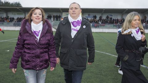 El 25N tiene cada vez más eco en la Costa da Morte y, particularmente, en sectores como el deportivo. Se vio ayer con el Bergantiños femenino y, particularmente, en el campo de A Laracha, justo antes de un derbi decisivo con el Paiosaco, donde con un manifiesto y con la presencia de la secretaria xeral de Igualdade, Susana López, y con la de representantes municipales -a la cabeza, el alcalde, José Manuel López-, culminó una campaña que implicó a clubes y escuelas en un mensaje claro de repulsa a la violencia.