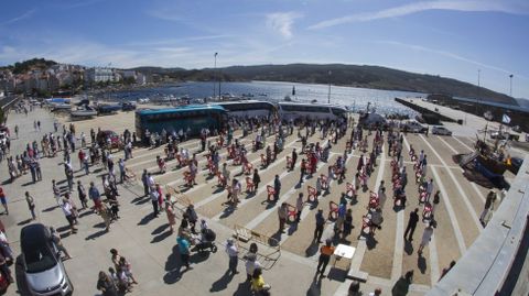 Al igual que en Corcubión y en Cee, tampoco en Corme este año hubo procesión marítima. Sí una ofrenda, flores lanzadas al Atlántico, en memoria de los que ya no están. La explanada del muelle, previa solicitud de permiso a Portos por parte del Concello, como recordaba el alcalde, Lois García, acogió los actos: un pasacalles a cargo de Inllar y una misa de campaña con la gente sentada a una distancia que respetase las normas de seguridad, por las que veló Protección Civil.