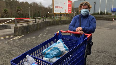 Carmen Mourelle Rodríguez es de Cuns y ayer salía del Carrefour tras realizar una compra «para varios días». Ella prefiere comprar en Carballo, «pero os peches perimetrais impídeno». Según ella, el Carrefour estaba prácticamente vacío: «Apenas hai xente, ou polo menos non hai como había antes das restricións».