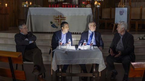 Pero esos curas no fueron los protagonistas de ese acto pensado para abrir la Semana da Familia y charlar sobre los 50 años de la actual iglesia. Aportaron sus memorias, que no son pocas, pero el verdadero conductor de la charla fue el arquitecto José Manuel Rey Pichel, quien más que un discurso o conferencia impartió una amena lección magistral que incluyó capítulos diversos: la situación de la iglesia vieja, que fue necesario derribar. Sus impresiones como vecino, ya que en ella se había bautizado, hecho la comunión y asistido a mil misas. Su magisterio como arquitecto, el porqué de hormigón, el diseño final, sus influencias en la carrera, el contexto, el proceso constructivo... Sus amigos, aquellos que con él conocieron bien ese lugar. Los colaboradores (entre el público, Generoso Angeriz, uno de los tres encargados), los vecinos... Y hasta su etapa como director de Patrimonio, que dejó a la iglesia encauzada a su protección.