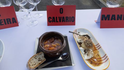 - O Calvario | Fabas de Baio con lacón e chourizo y postre de Panacota en area de praia.