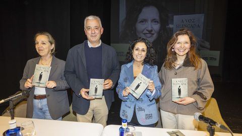O secretario xeral da Lingua, Valentín García, así como a alcaldesa, Margot Lamela, acompañaron á autora na presentación de «A voz silenciada»
