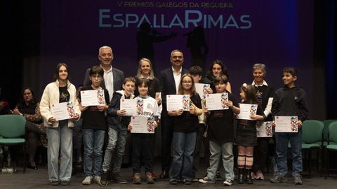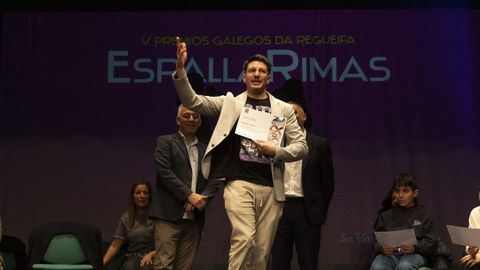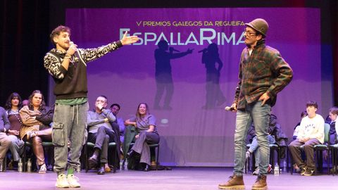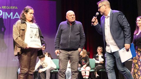 Roi Souto e Xoel Maneiro, da Escola Semente de Compostela, e Leo Salgado, Candela Alvarellos, Sabela Nieto, Marité García, Amalia Rodríguez, Xan Nieto, Pedro Fernández, Celtia Vázquez, Gael Ferreiro e María Bello, da Escola da Regueifa de Carballo, abriron a gala cunha exhibición de improvisación. «Esta xente é a que vén detrás, así que hai que seguir apoiándoa», dixo Lupe Blanco, directora da escola carballesa, cando xa tódolos alumnos lanzaran cadansúa copla de presentación e participaran nun exercicio de improvisación coas palabras «verdade» e «igualdade». Isto último fixérono ao son desa melodía que Milladoiro recuperou da muxiá Eva Castiñeira, homenaxeada nas últimas Letras Galegas, e que Pinto d'Herbón popularizou entre os regueifeiros.
