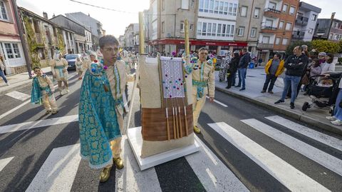«Acabamos cansados, pero con ganas de máis», afirmaba Ariana Rodríguez, de la asociación Os Cansorriños (Camariñas). Ellos son 56 e integran la comparsa Fíos de salitre, una celebración del encaixe de Camariñas, de identidad, este año que la Mostra cumple 35 ediciones: «Levamos 480 metros de encaixe de Camariñas, real, palillado pola xente da nosa comparsa. Empezamos hai vinte anos como unha comparsa pequeniña e familiar, de amigos Pero hai dez anos empezamos a medrar...». Y hasta ahora, con hombres y mujeres implicados y trabajando «dende outubro». Estiman que irán a dos concursos por día, esta semana y la que viene, pero como todo, dependerá del tiempo que haga.
