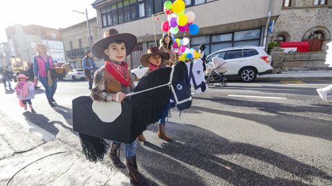 El barrio carballés de A Milagrosa con su tercer Re-Nacemento do Chorón impulsado desde la comisión, Valenza con su Antroido do Burro, Baio con su fiesta en el pabellón, Fisterra con su desfile o Laxe con su Caietano, música y comparsas sumaron ayer carnaval a un sábado que, en el caso laxense, tuvo cariz reivindicativo Una de las comparsas clamaba por atención para Palestina y otra mostraba oposición a la mina de Coéns, llamada de atención a la empresa y Concello.
