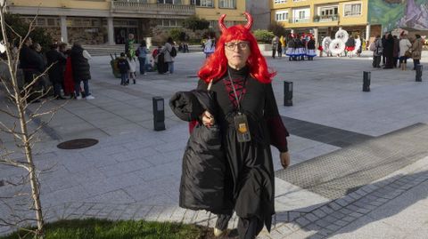 Pintándose las uñas para la ocasión y con nervios desde el día anterior, algo que no le suele ocurrir, Mariola Martínez contaba este sábado a mediodía desde Fisterra que entiende «unha responsabilidade» el papel que le ha tocado este año en el carnaval de su tierra. No solo presentará por vez primera el concurso del martes con Santi Caneta, palabras mayores que resolverán a modo de sketchs y que andan preparando a conciencia, sino que también le tocó este 2026 ser pregonera. Apostó por una introducción del significado del entroido. Con eso abrió y cerró en la tarde de este sábado en la Praza da Constitución, pero en medio, y no podía ser de otra forma siendo fisterrá, coló el asunto de la moción de censura y ese «algo de lío» que hubo en la entrega del bastón de mando. «O noso carnaval é o que mellor retranca ten. Temos xente moi válida», afirma Mariola. Un espectáculo de baile acompasado está bien, y lo disfruta, pero a su juicio la esencia de esta fiesta está «nesa retranca, en que me fagan rir». Y para eso la actualidad local es toda una mina.
