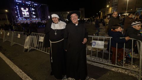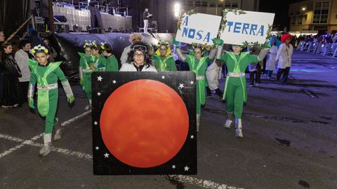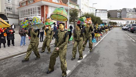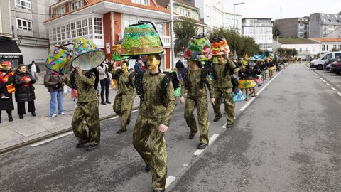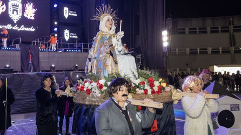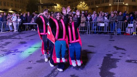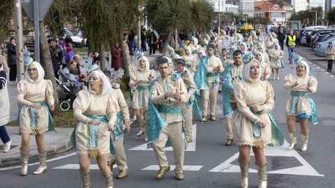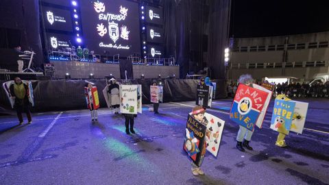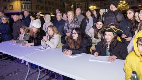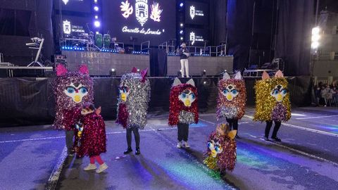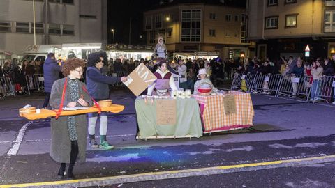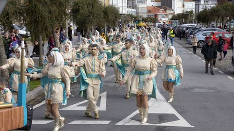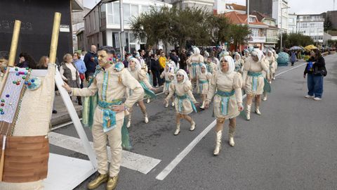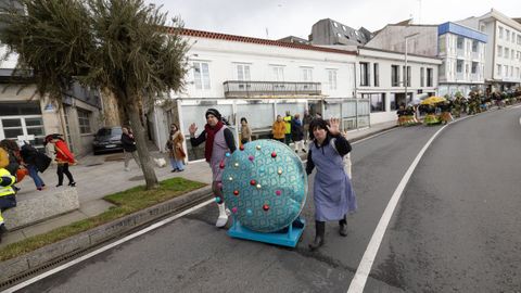 Pero antes, en la carpa instalada en la Praza do Concello, el Aula de Teatro Municipal representó una pequeña pieza cómica en la que se puso en escena un imaginario concurso de pesca de altura presentado por el influencer Rafa Sánchez. Un teatrillo en el que cuatro concursantes hubieron de presentar su captura del día para ser evaluados por un jurado, y en el que no faltaron las proclamas: «Nin que o diferente non tivese dereito a existir», «berberecho recollido en Baldaio, traballo ben duro...», «estamos a tempo de salvar os mares, que están cheos de lixo e plásticos», «conforme está o novo Regulamento da Pesca, está a cousa complicada...».