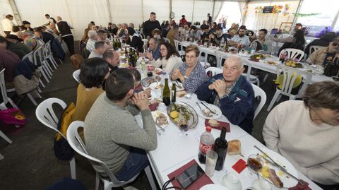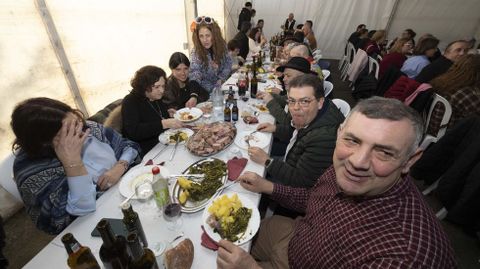 En el municipio vecino, Carballo, fue la asociación cultural Ría de Lema la que ayer promovió un cocido en el Cámping Baldayo. Explicó Sara Varela que reunieron a 140 personas y que las entradas ya llevaban agotadas dos semanas, por lo que no pueden estar más contentos de cómo ha colaborado el entorno: «Temos moitos nenos, uns 30 ou 40, moita xente nova». Para ellos habría entretenimiento. Como en Erbecedo, no les faltó la música ni los sorteos de regalos, ya fuesen cortesía de la organización —como una cesta con productos para un cocido de unas diez personas o, también, electrodomésticos— o llegados mediante colaboraciones: Frutas Gabín, Teldy, peluquería Estrella, agencia de seguros Occidente, pastelería San Luís, O Lagar, A Cachadesa, el propio cámping... «A idea é xuntar á veciñanza e cada nos somos máis», celebraba Sara.