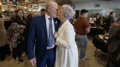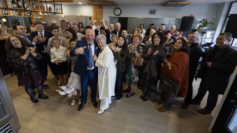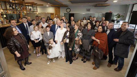 En la celebración de hoy domingo reunieron a 42 personas, entre familiares y amigos. Escogieron el Asador O Pedrido, que está en el polígono de Bértoa, muy cerca de la casa natal de Beatriz. En la misma parroquia. Cuando se casaron aquello todavía era monte, pero con los años todo cambia.