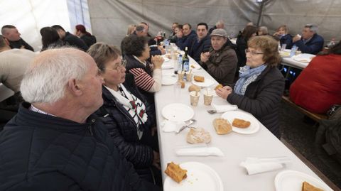 A asociación cultural Fonte Sagrada de Santa Baia de Castro (Coristanco) promoveu tamén este sábado a súa segunda Festa do Cocido. Vecindade baixo carpa no aparcamento da igrexa que non só gozou da gastronomía, senón tamén do sesión vermú e tardeo con Martín Carrión. Fonte Sagrada vai polos dous anos de traxectoria, tempo no que a entidade xa se viu ben activa.
