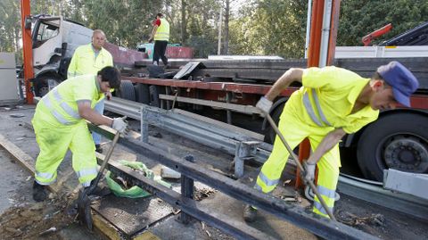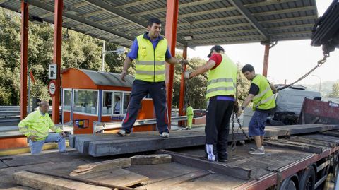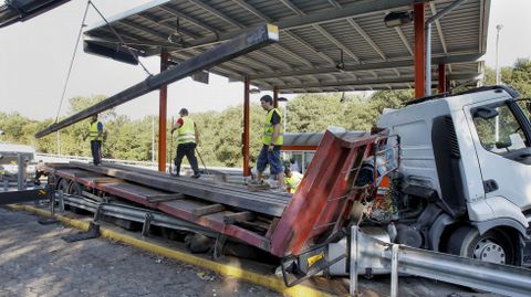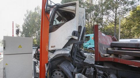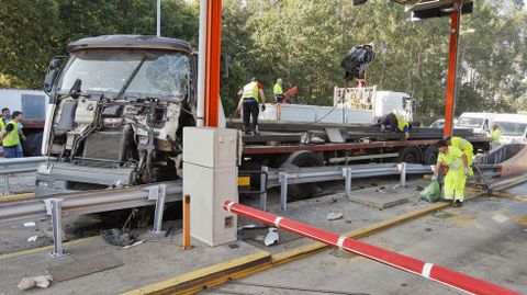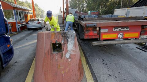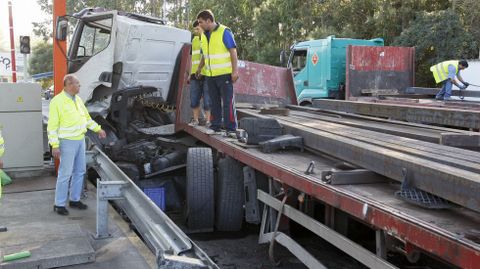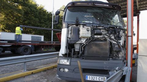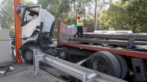 30 sep 2015 . Actualizado a las 05:00 h.Un camión cargado de palanquillas (barras de hierro) colisionó ayer contra el bumper de la cabina de telepeaje de la autopista AG-55 situada a escasa distancia de la salida que va al polígono de Lendo, en A Laracha. A consecuencia del choque, el conductor, que sufrió un golpe en el hombro- y magulladuras, perdió el control del vehículo, chocando este contra la parte superior de la instalación. Ocurrió sobre las 15.30 horas, cuando el camión se dirigía a Celsa Atlantic. Hasta las 18.00 siguieron las tareas de trasvase del material con una grúa a otro tráiler, mientras que los trabajos de limpieza y de arreglo aún se prolongarían más tiempo, incluso hasta hoy. El conductor dio negativo en el control de alcoholemia