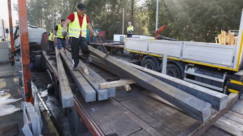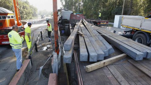 El tráiler iba cargado de barras de hierro, que tuvieron que trasladarse con grúa a otro vehículo. Las labores se prolongaron durante buena parte de la tarde de ayer