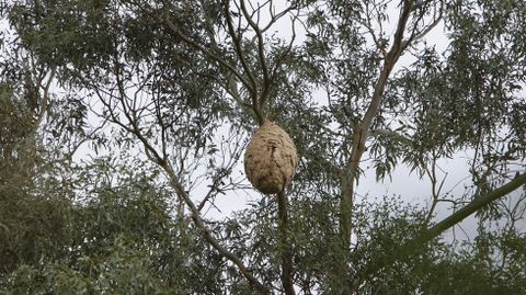 09 oct 2015 . Actualizado a las 07:34 h.La eliminación de los nidos de avispa asiática se ha convertido en un dolor de cabeza para los trabajadores de Tragsa, la empresa pública encargada de esta labor en toda Galicia, pero también para los concellos de la Costa da Morte. En Ponteceso y A Laracha han resultado inalcanzables sendas colmenas construidas por los insectos en eucaliptos a unos 25 metros de altura.