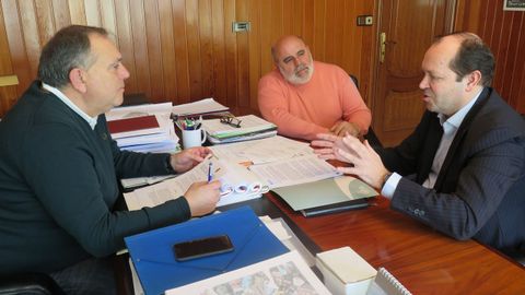 El alcalde de A Laracha, José Manuel López Varela; el responsable del área de Medio Ambiente y número 2 del ejecutivo local, José Ramón Martínez Barbeiro; y el presidente de Sogama, Javier Domínguez Lino, se reunieron ayer en el despacho de alcaldía para tratar la adhesión del Concello al programa de promoción del reciclado a través del compostaje, que la entidad pública construye en Areosa, Cerceda, dentro del marco estatal de gestión de residuos.