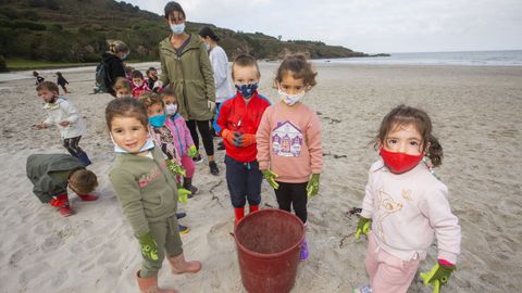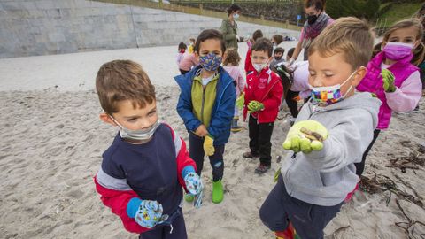 En el caso de los escolares laracheses, estos trabajaron en el arenal de Caión a lo largo de la mañana. Coordinó la actividad el centro educativo de la localidad y, como la situación epidemiológica parece haber mejorado, invitaron a participar a pequeños de los CEIP Alfredo Brañas (Paiosaco) y CEIP Otero Pedrayo (A Laracha). No pudieron sumarse, eso sí, familiares o demás voluntarios y hubo que mantener las distancias, pero tanto los niños como los equipos docentes agradecieron este pequeño gesto hacia la normalidad.
