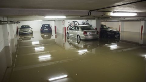 «Avisáronme sobre as catro da mañá, baixei ao garaxe e xa vin a auga como a un metro de altura. Non había nada que facer». José Manuel Vila Recarey guarda un Opel Astra de dos años de antigüedad en uno de los garajes afectados. Reside en la rúa Barcelona. En el sótano donde guarda su turismo «hai outros sete coches máis e no que está ao lado, o do portal 14-16, hai outros dez e unha moto. E neste da rúa Saúde, outros cinco máis unha moto», enumeró este damnificado, que en la mañana de ayer seguía con atención los trabajos de achique de los equipos de emergencias. En su caso no podría valorar los desperfectos, pero viendo a la altura que alcanzó el agua tiene claro que su vehículo, como el de otros vecinos, «ten danos nos sistemas electrónicos e eléctricos e no tapizado». José Manuel Vila estaba a la espera de que concluyeran las tareas de achique para llamar una grúa y enviar su coche a un taller.