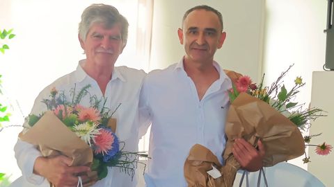 02 jul 2023 . Actualizado a las 05:00 h.Dúas vidas dedicadas á ensinanza son as de Hipólito Santabaya e Pedro Márquez, profesores do IES Agra de Raíces de Cee que agora se xubilan e que onte recibiron a súa merecida homenaxe no Cuatro Perras de Corcubión, xunto a 44 compañeiros, que lles regalaron, a cada un, un ramo e un reloxo. Hipólito, que naceu en Brens, foino todo no Agra, comezou de alumno e logo voltou xa como profesor de Educación Física. Foi Xefe de Estudos e mesmo Director, cargos que desempeñou de xeito abnegado e íntegro. Tamén a el débenselle os inicios do departamento de orientación, pois con razón estudou e licenciouse en psicoloxía.