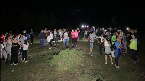 Salieron sobre las 23.00 de la Casa da Cultura y en las brañas y monte de Banle se internaron, acercándose a mámoas o petroglifos, algunos de reciente descubierta. Arqueología, arte rupestre... Tuvieron como guías en esta materia a técnicos del colectivo A Rula, empezando por su presidente, Luis Leclere y siguiendo por David Roget o Antón Bouzas, este último muy didáctico en el apartado de observación astronómica, para el que A Rula portó telescopios. Constelaciones, planetas, estrellas... la temática suscitó preguntas. Tierra, piedras y cielo tienen mucho que contar. Tanto así que el objetivo de Fumes do Cal, yendo de la mano del Concello de Cee, es hacer de esta ruta no algo puntual, sino perenne, duradero, homologándola y dotándola de una señalización adecuada a ese rango. Ellos lo hicieron de forma básica para esta ocasión, pero quieren ir más allá, «e que estas actividades sexan visita obrigada cada verán».