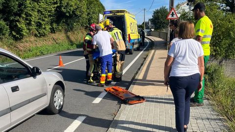 Como consecuencia del accidente, el varón resultó herido en las piernas y también sufrió un golpe en la cabeza, confirmaron desde Emergencias. Estaba consciente y permanecía en el suelo a la llegada de los servicios sanitarios del 061 y de los bomberos de Cee, que colaboraron en su inmovilización y traslado en ambulancia al hospital comarcal Virxe da Xunqueira. Iba estable.