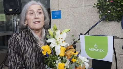 En el centro, tras las intervenciones institucionales, Concha descubrió una placa que, dando cumplimiento al acuerdo unánime de la junta directiva de la entidad, otorga su nombre al edificio. También pasará a ser presidenta de honor de Aspadex, como así lo dijo Evaristo Ramón Lema Antelo, presidente. «Han sido 42 años de al servicio de las personas con discapacidad intelectual (...) Concha ha sido la materia que nos ha unido a todos, todos estos años al pie del cañón, 24 horas, los 365 días del año, sin descanso. Parece una exageración, pero es la verdad», afirmó Evaristo, quien recorrió el camino hecho, desde que en el 83 se empezó con apenas media docena de usuarios en una unitaria cedida por el Concello de Cee a todos los servicios que se han ido logrando hasta el momento, que no son pocos: «Concha fue, es y seguirá siendo el alma de esta asociación. Representa la honestidad, el esfuerzo, la humildad y la visión colectiva».