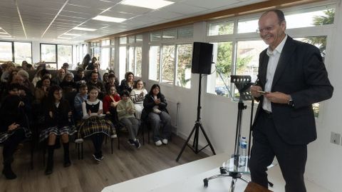 A temática dos seus relatos sacoulle a bágoa a máis de un, e con intensidade tamén foron acollidas as palabras de Valentín García, secretario xeral da Lingua. Ao lado dun antigo pupitre da escoliña de Ferreira que a el o levou a viaxar á súa infancia, incidiu na importancia da escrita e de coidar o discurso nun tempo tomado pola imaxe e pola dotación tecnolóxica máis avanzada. «Tivestes a inmensa fortuna de nacer e vivir aquí, en Galicia», afirmou. Falou Valentín dun día histórico, e non só pola conmemoración este 20 de decembro dos 118 anos da primeira interpretación do Himno Galego na Habana, senón porque os alumnos e alumnas do Manuela Rial, do Labarta Pose de Baio, do CEIP de Caión e do Alcalde Xosé Pichel de Coristanco onte galardoados, pasan a engrosar un podio de orgullo: «Sodes xa galegas e galegos destacados. Aproveitade estas oportunidades, aproveitádeas sabendo de onde vimos, que temos unha lingua e unha cultura propias. Non o esquezades nunca, levádeo con orgullo, alá onde esteades, dediquédesvos ao que vos dediquedes».