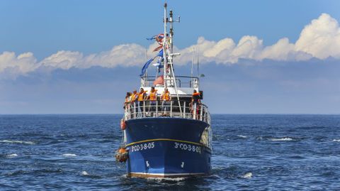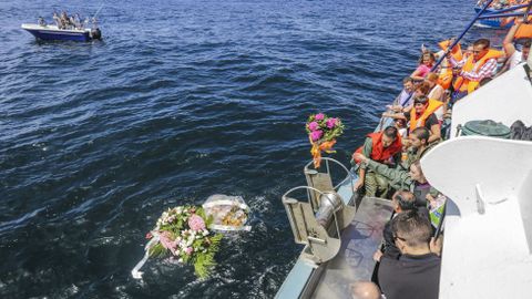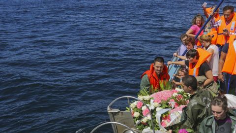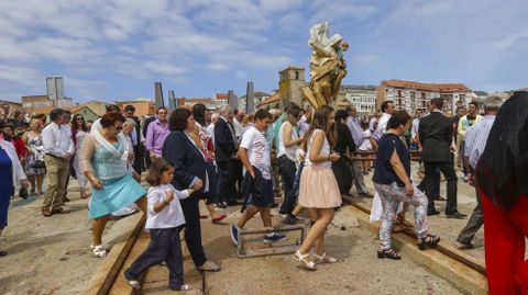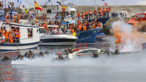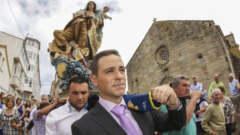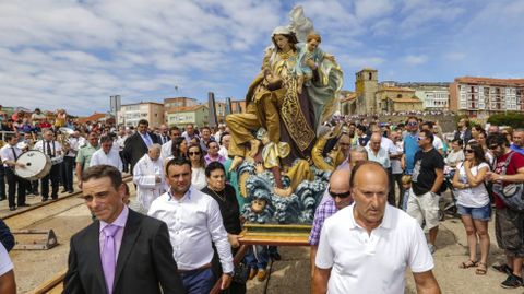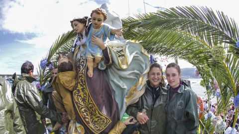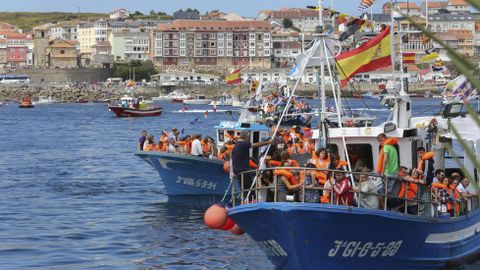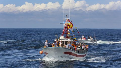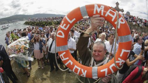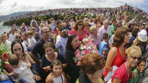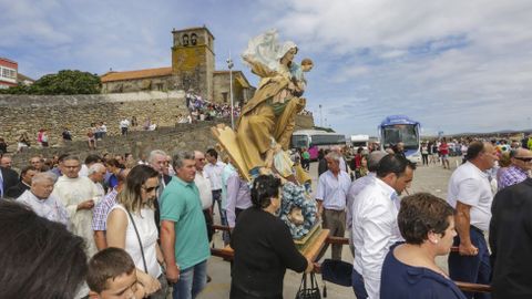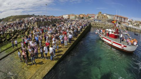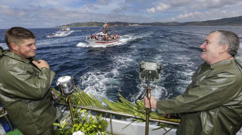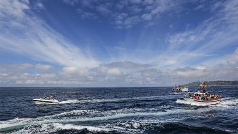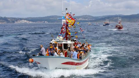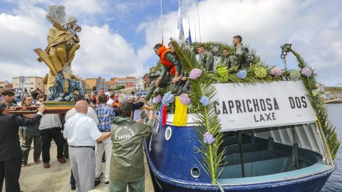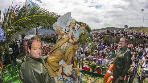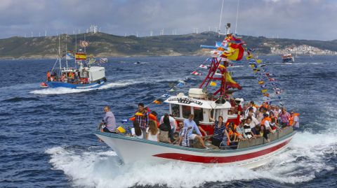 Tras la representación, el Caprichosa Dos fue el encargado de portar la imagen de la virgen durante la procesión marítima. En total, casi una veintena de barcos la acompañaron durante su paseo por la ría. En las embarcaciones iban un gran número de personas, que no quisieron perderse el viaje de ida y vuelta, que por primera vez llegó hasta el puerto de Corme. Fue una procesión más larga de lo habitual, que salió de Laxe a las dos menos diez y tardó algo más de hora y media en regresar.