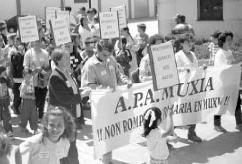 12 jun 2016 . Actualizado a las 05:00 h.Alrededor de 200 vecinos de Muxía salieron a la calle tal día como hoy de 1998 para protestar por los problemas de las infraestructuras educativas y los cambios originados por el nuevo mapa autonómico de centros. Los manifestantes, contrarios al traslado de niños de educación primaria al colegio de Os Muíños y críticos con la falta de unidades suficientes en las instalaciones que se estaban construyendo en O Enfesto, portaban pancartas con lemas como «Alcalde, escoita o pobo está en loita» y «Non á separación, queremos educación», expresaron su intención de seguir con las movilizaciones y aseguraron que en concellos vecinos con problemas similares sí se habían encontrado soluciones.