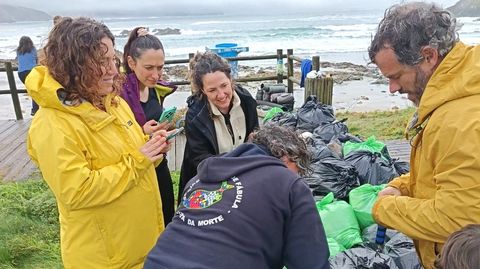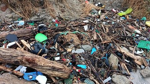 Se encontraron muchos microplásticos, seguramente aquellos que quedaron pendiente de sacar de la pérdida del buque Toconao. De la recogida de lo más voluminoso (lo minúsculo no fueron capaces, y hacen un llamamiento a Medio Ambiente de la Xunta), juntaron casi 800 kilos.