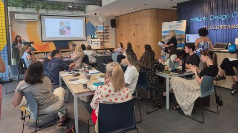 La de ayer en Tesalónica fue una jornada dedicada al intercambio de buenas prácticas alineadas con la Nueva Bauhaus Europea, a cargo de Nuria Freire, técnica de paisaje de la Fundación Juana de Vega y persona que ha desarrollado la iniciativa en O Couto, «nova veciña», como apuntaron desde Ponteceso. Lo expusieron como ejemplo de intervencion replicable que integra arte, biodiversidad, participación comunitaria e identidad cultural.