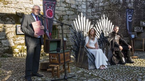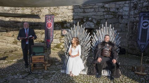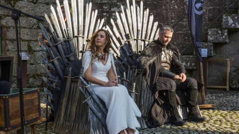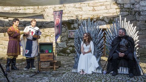 Lo orquestraron durante intensos meses de trabajo, en especial los elaboradísimos tronos de hierro, que bien podrían pasar por los utilizados en el decorado de la serie. «Fixemos tres, pero no que máis traballei foi no que levamos ao restaurante. Debeume levar un mes facelo, porque fixen varias probas de pintura e non me gustaba. Teñen cada un 112 ou 113 espadas feitas de tarima flotante», explica Víctor. «Deron moitísimo traballo», coincide Cathy, que encarnó durante la ceremonia a Daenerys Targaryen. Él, por supuesto, asumió el papel de Jon Snow.