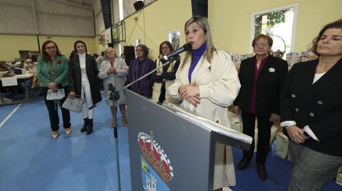 Piezas «únicas e especiais»: «Nesta sociedade do urxente, o traballo das palilleiras transmite a serenidade e paciencia que tanto precisamos». Habló ella de «fíos entretecidos», de pasado, de presente y de futuro, cuestiones a las que también aludió la alcaldesa de Vimianzo, Mónica Rodríguez, durante su discurso, después de que Lourdes Lema, presidenta de la entidad organizadora, abriese el acto oficial.